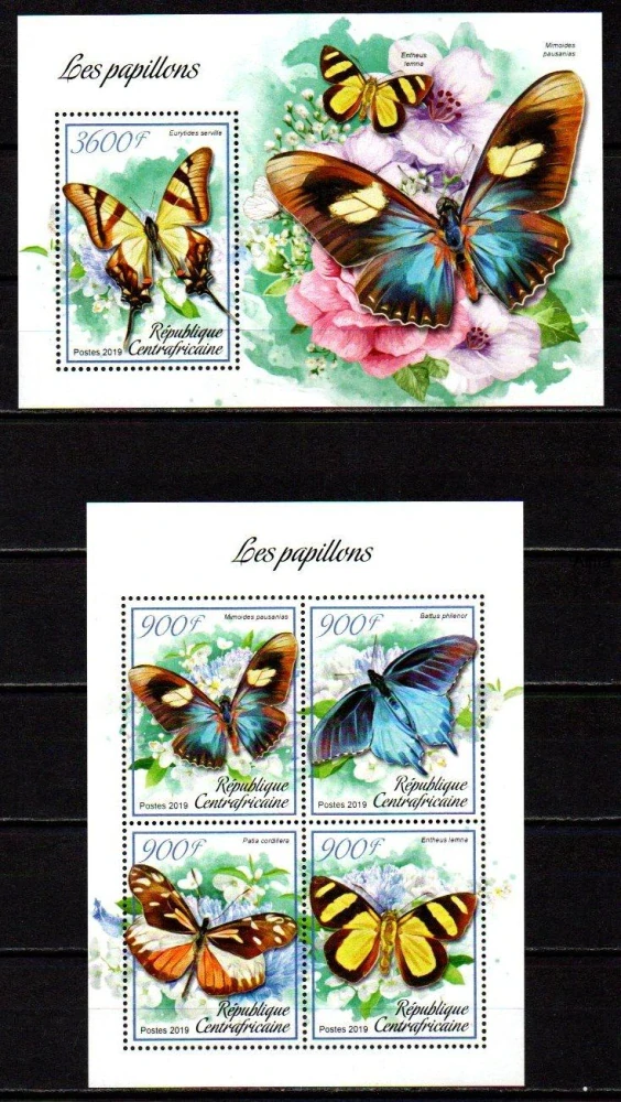 Centrální afrika známky, motýli, 2019