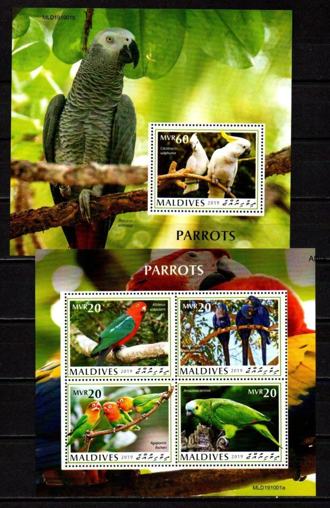 - Maldives známky, papoušci, 2019