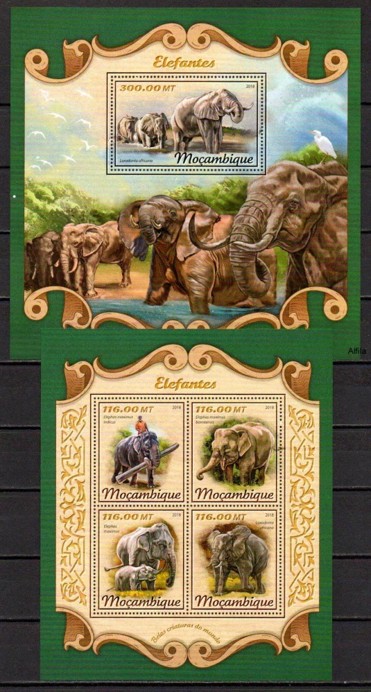 - Mosambik známky, 2018, Sloni